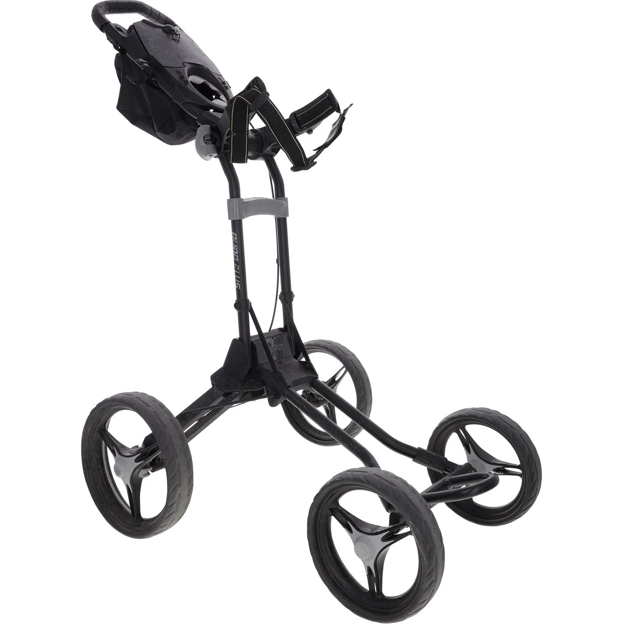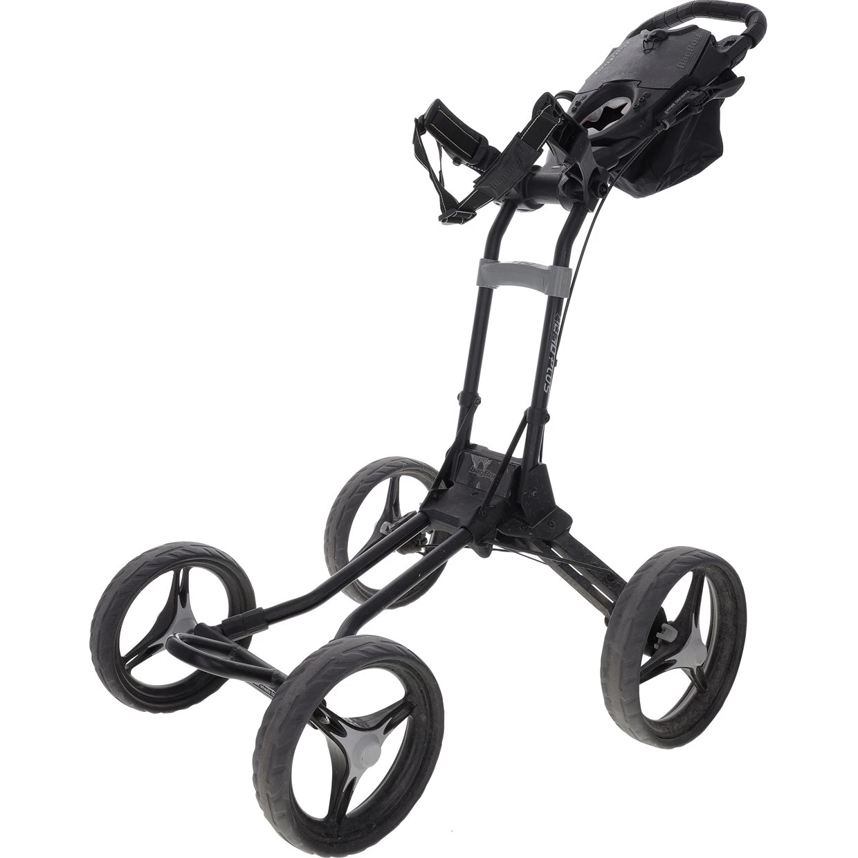 The BagBoy Quad Plus push cart is stand and cart bag friendly. The Quad Plus features 4 wheels for superior stability all of which are oversized to roll easily through the grass.