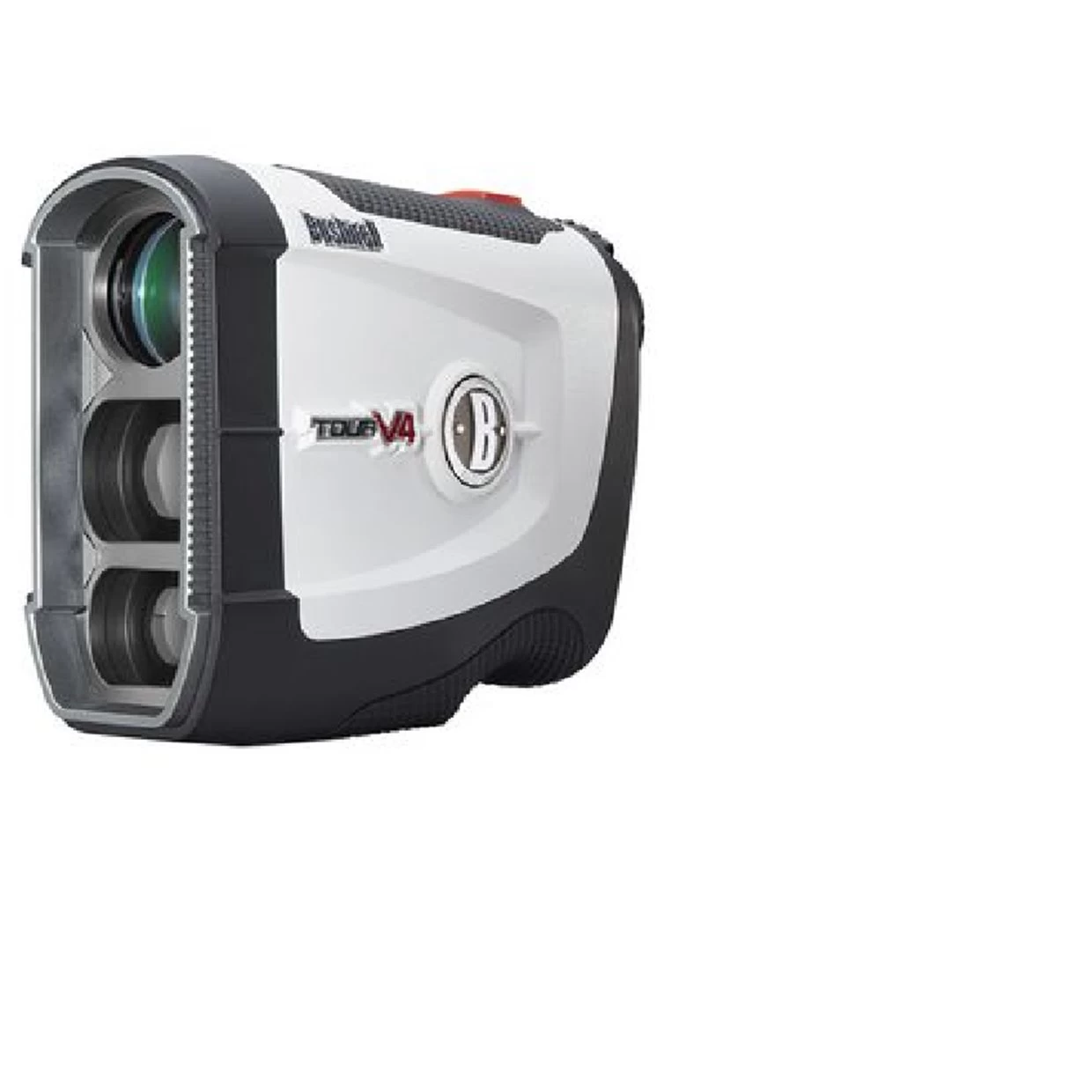 The Bushnell Tour V4 Rangefinder is the complete package for laser rangefinders with a sleek look, great feel, and incredible performance. The PinSeeker with JOLT technology provides you with short vibrating pulses when the laser has locked onto the flag for assurance. The rangefinder ranges 5-1,000 yards with an accuracy to 1 yard, and 400+ yards to a flag and features 5x magnification with a fast focus system, an ergonomic design with Stabi-Grip technology, and a rainproof / waterproof construction.