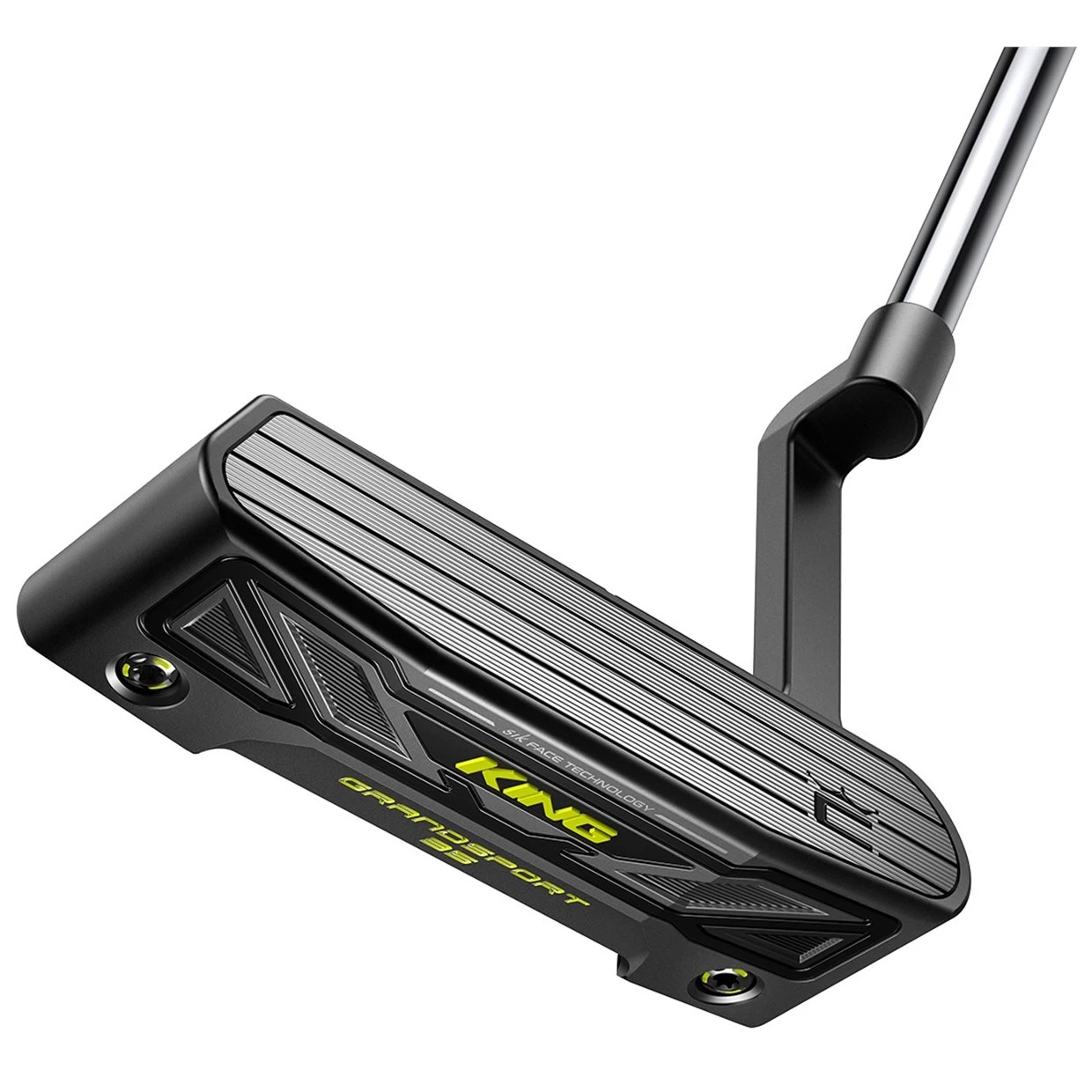 The Cobra King 3D Grandsport 35 Putter features a revolutionary 3D printed lattice cartridge and forged aluminum crown for a sleek, innovative look. The futuristic 3D printed lattice is developed with nylon to stiffen the overall structure in the lightest way possible, offering unpenalized mass in complex geometry. MIM Tungsten Weights are positioned strategically away from the center in a high-density area. The multi-material design creates the ultimate high MOI putter, optimizing performance and stability. A new aluminum Sik Face insert improves feel and saves weight to maintain optimum roll technology.