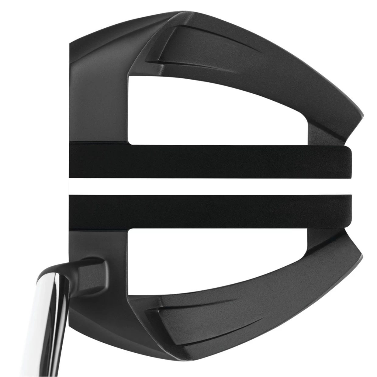 The Odyssey O-Works putters feature Odyssey’s revolutionary Microhinge insert technology that co-molds a stainless steel Microhinge plate into the Thermoplastic Elastomer Feel Layer to provide great feel and allowing the hinges to lift the ball into a better roll at impact. The all-black finish has been a popular choice on Tour for years and gives the putter a clean, simple look at address. The S Neck is a short slant hosel that gives the putter the popular toe hang feature.