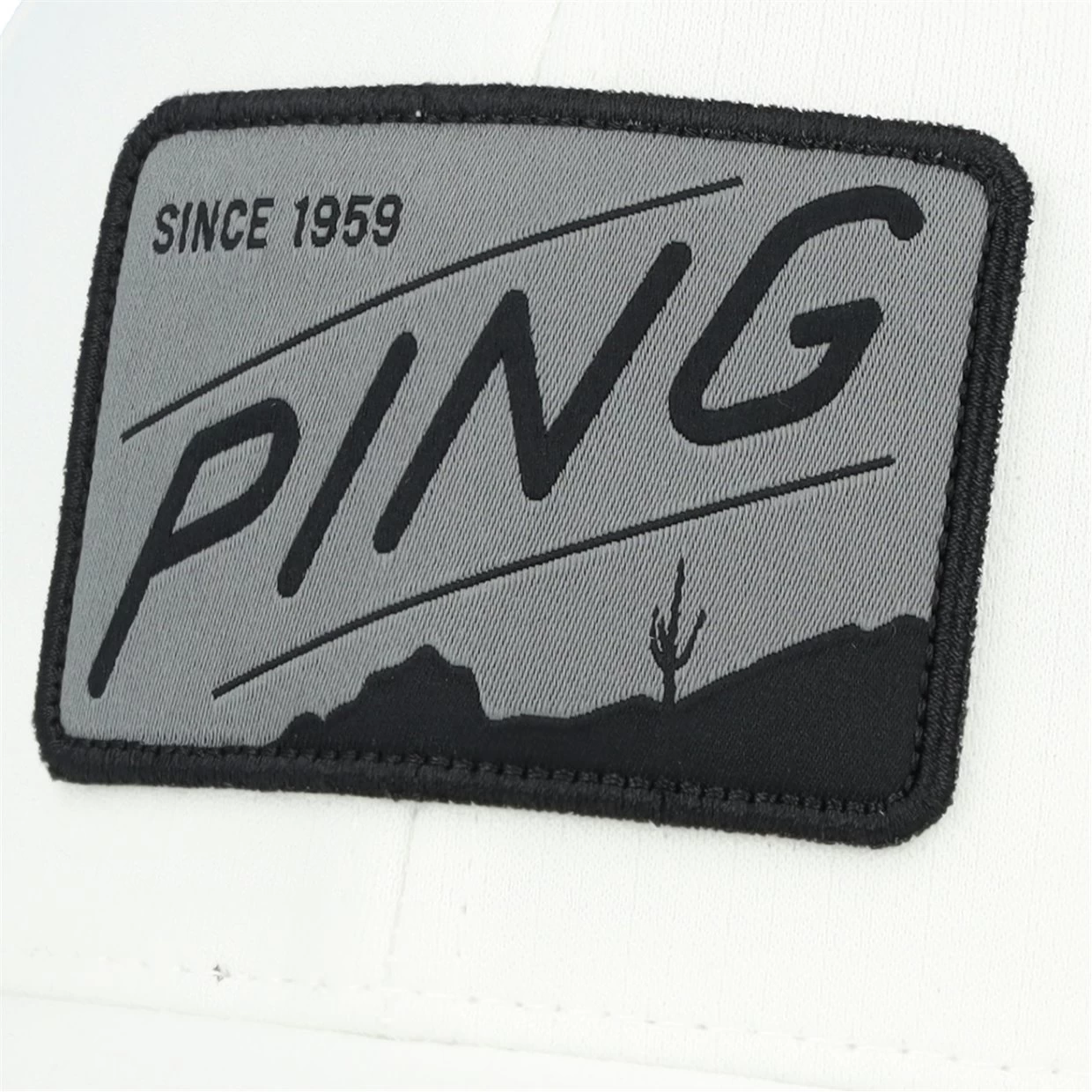 An iconic Phoenix landmark, Camelback mountain, is silhouetted on a faux leather patch. Made of a lightweight stretch polyester blend with a mesh back, it features a moisture-wicking SensorCool headband and an adjustable snapback closure. It’s designed to maintain its crown structure.