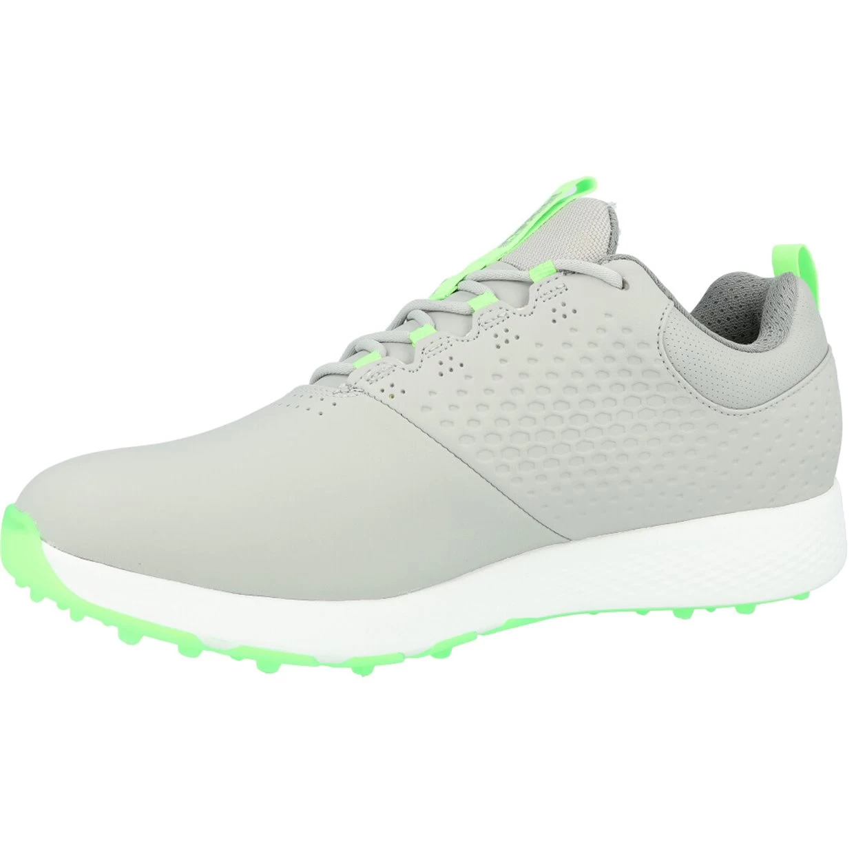 The smooth leather upper on the Go Golf Elite 4 spikeless golf shoe offers a classic look with H2GO Shield waterproof finish. ULTRA GO and GOGA MAX cushioning provides lightweight, high-rebound cushioning for all day comfort on the course. The GRIPFLEX spikeless TPU oustole gives you extremely sturdy traction and stability.
