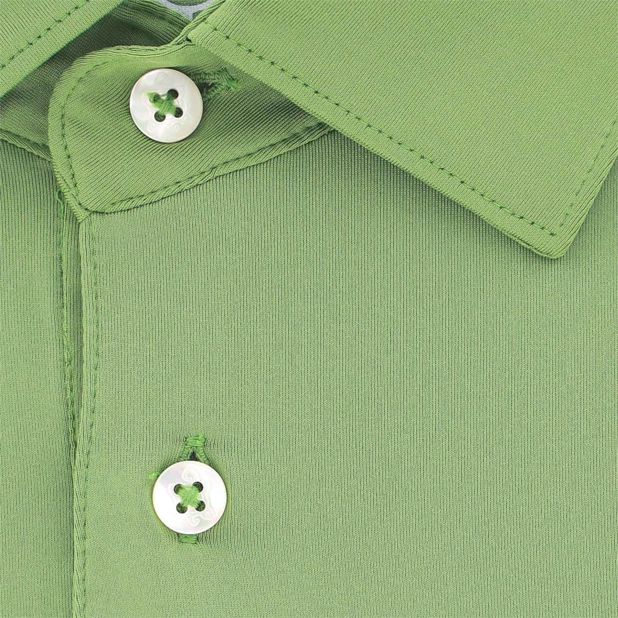 - Three-button placket with self-fabric collar